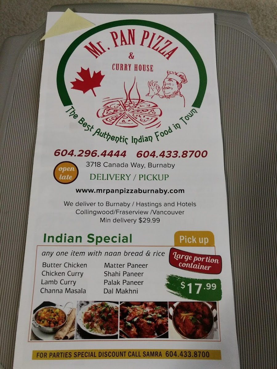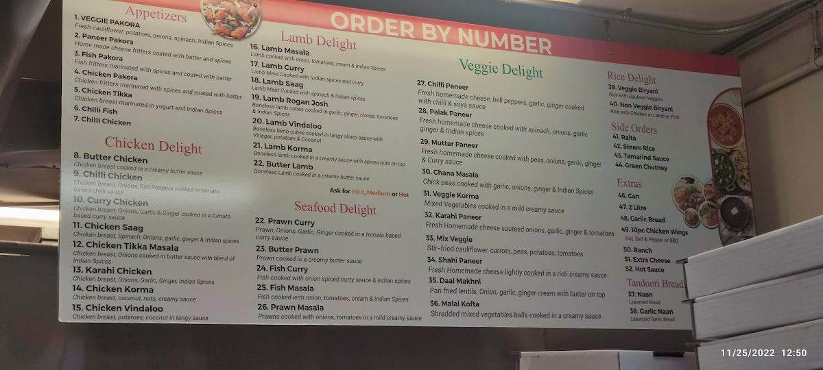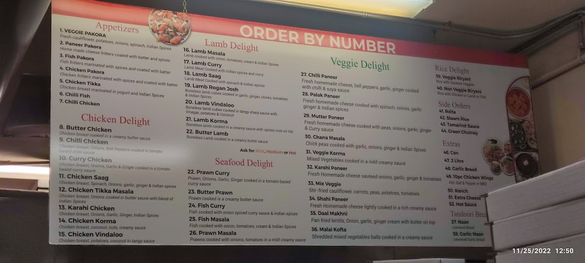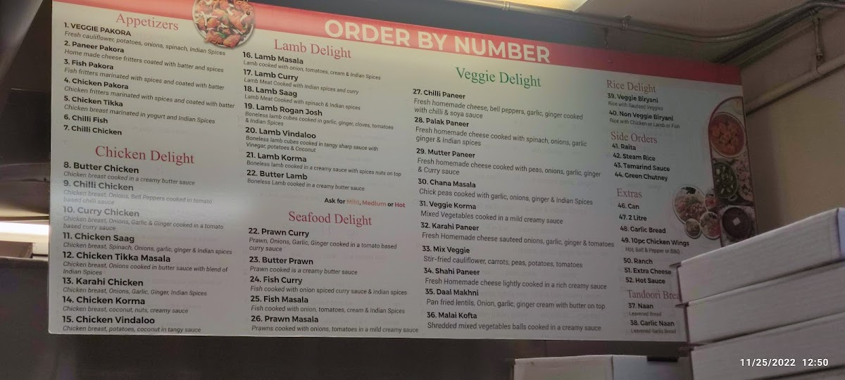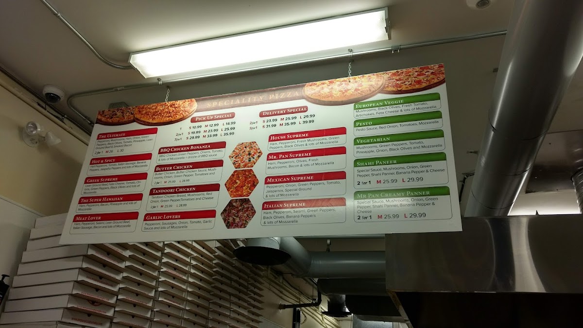 The menu at Mr. Pan Pizza offers a diverse and rich selection that caters to various tastes. For appetizers, you can start with Veggie Pakora or Paneer Pakora, or opt for Chicken Pakora or Fish Pakora, all offering crispy, flavorful bites. The Chicken Tikka is also a great choice. If you're a fan of seafood, the Prawn Curry and Butter Prawn are standout dishes, along with the Fish Masala and Prawn Masala. For chicken lovers, dishes like Butter Chicken, Chilli Chicken, and Chicken Tikka Masala bring bold, aromatic flavors. Lamb options include Lamb Masala, Lamb Rogan Josh, and the fiery Lamb Vindaloo. Vegetarians can delight in dishes like Chilli Paneer, Palak Paneer, and Chana Masala, with the Veggie Korma being a creamy, rich choice. Rice lovers will enjoy the Veggie Biryani and Non-Veggie Biryani for a fragrant, hearty meal. For dessert, the Gulab Jamun is a perfect sweet finish.